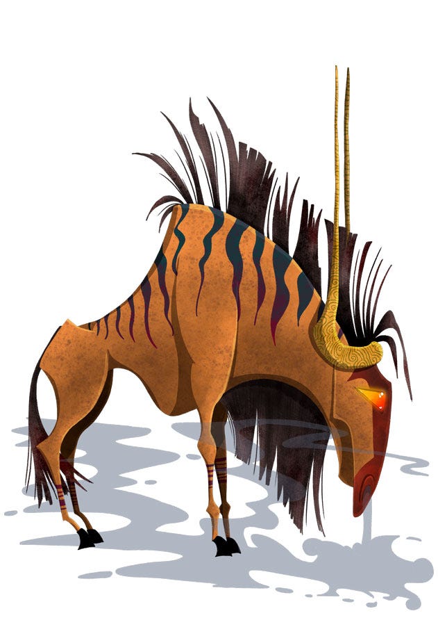 Catoblepas, a peaceful and placid bovine, dwelled in the high valleys of the Ethiopian Highlands, in that part of the continent that is so close to the cobalt blue sky that was rightfully named the Roof of Africa. It whiled away its days in serene tranquility, with its massive head always lowered, gently grazing upon the lush green grass, as if savouring every single blade. Truly, Catoblepas could spend its entire life in a state of composed calm, blissfully untouched by any disturbance or distress. Mother Nature had bestowed upon it an extraordinary gift, the most formidable defence ever granted to any living creature.