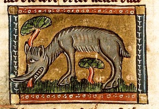 I do not speak merely of its impressively imposing stature, as immense as a bulky bull, but of its fearsome, ghostly gaze! With a mere glance, it had the power to transform any creature into a solid, silent stone. As if this formidable and wicked weapon were not enough, Catoblepas possessed a breath of poison, emanating a venomous and viciously toxic vapour from its nostrils.